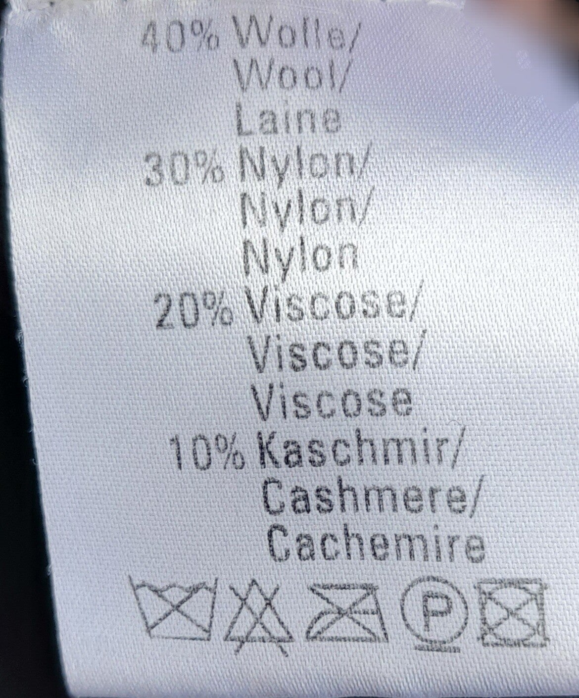 | Material | 40% Wolle, 30% Nylon, 20% Viskose, 10% Kaschmir | |
