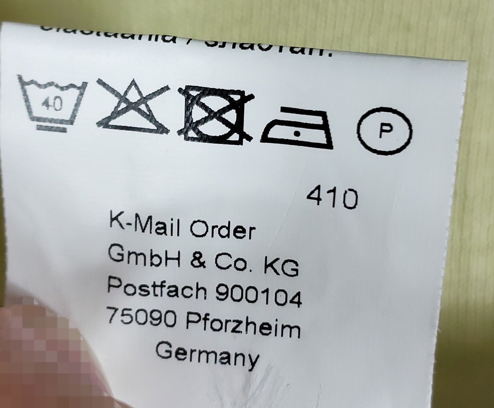 | Textilpflege | Maschinenwäsche | |